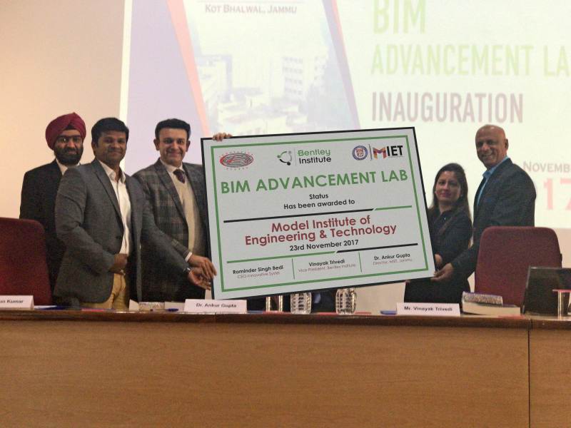 MIET has achieved the unique distinction of setting up of the first and the only Bentley’s BIM Advancement Lab in the state of J&K. The BIM Advancement Lab was inaugurated by Mr. Vinayak Trivedi, Vice President, and Global Head, Bentley on 23th November, 2017.