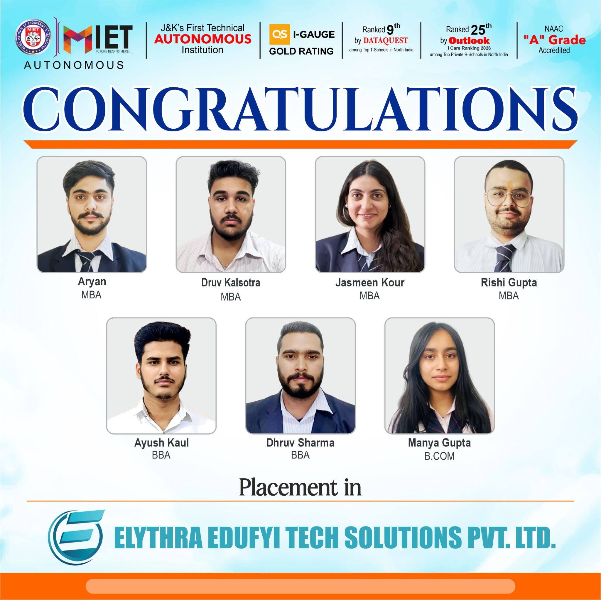 This achievement reflects his consistent effort, strong preparation, and commitment throughout the placement process.