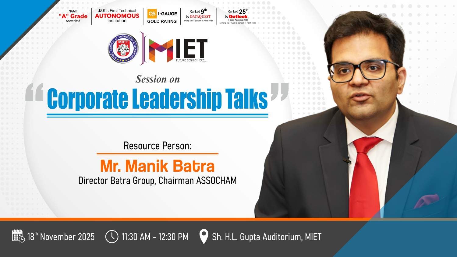 https://youtu.be/6x68irePFpM?si=wch0nBIAjDl0cb_g MIET Corporate Leadership Talk Series – Episode 2: The Vision of Manik Batra MIET was delighted to host an inspiring session featuring our esteemed